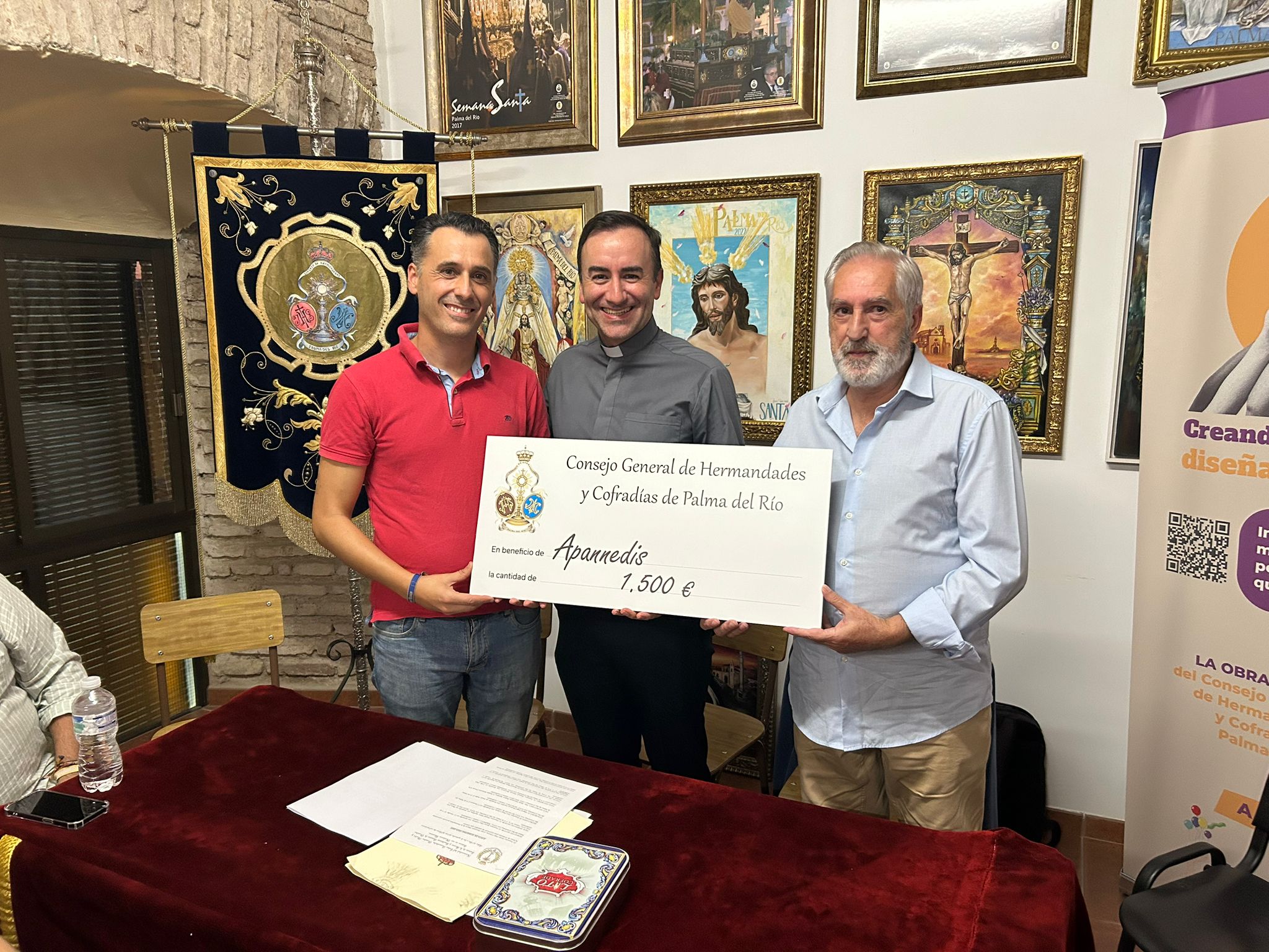 Palma del Río, 25 de septiembre de 2025 — En un emotivo acto celebrado el pasado miércoles 24 de septiembre en la sede del Consejo General de Hermandades y Cofradías de Palma del Río, se hizo entrega formal de un donativo de 1.500 € a la Asociación APANNEDIS. Este aporte económico se enmarca dentro de la iniciativa “Obra Social” del Consejo, destinada a apoyar iniciativas locales de carácter social y solidario.