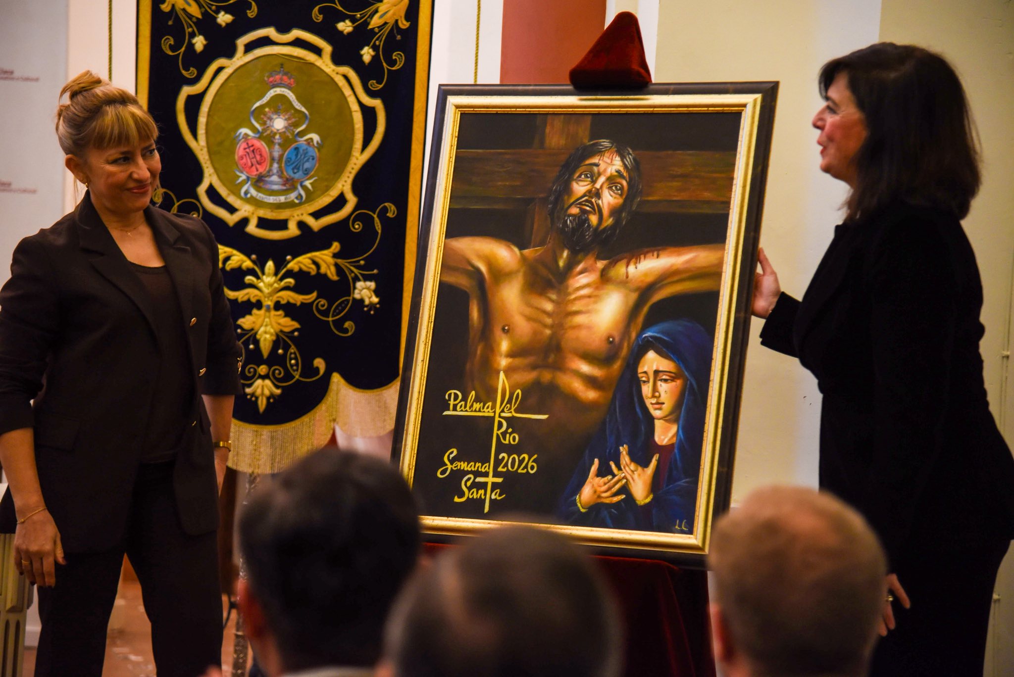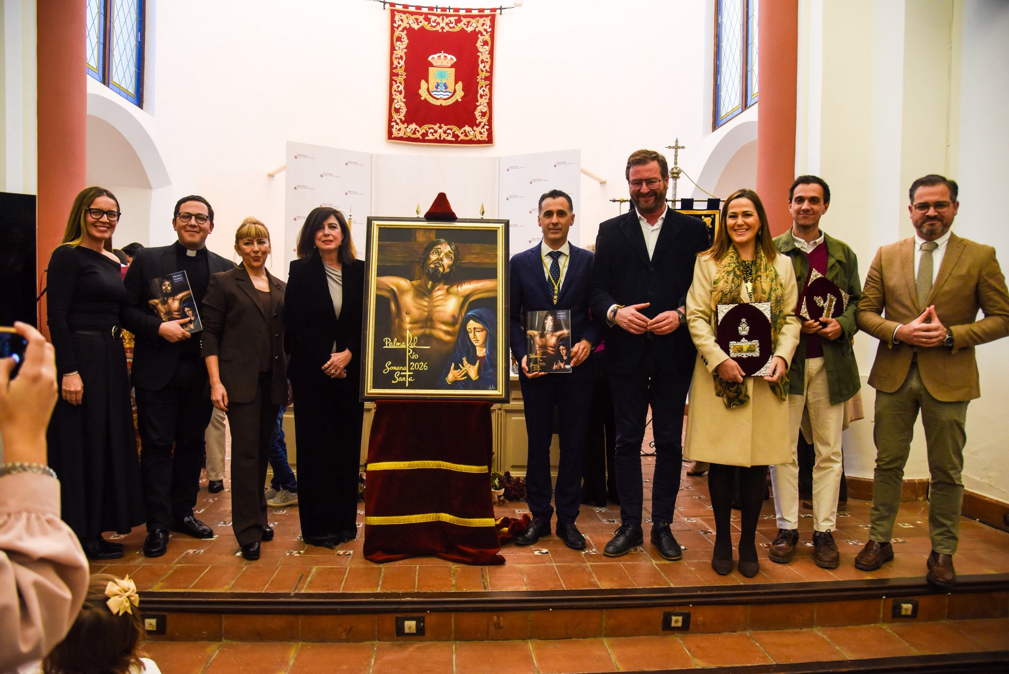 El acto estuvo presidido por el presidente del Consejo de Hermandades y Cofradías, José Antonio Barraza, acompañado por el párroco de San Francisco, don Fernando Luján, la alcaldesa de Palma del Río, Matilde Esteo, y la propia autora del cartel. Junto a ellos, estuvieron presentes representaciones de todas las hermandades de la ciudad, que quisieron acompañar este momento tan significativo para la Semana Santa palmeña.